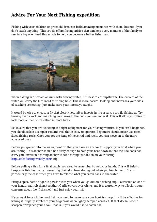 Advice For Your Next Fishing Expedition from image.slidesharecdn.com Speaking of getting out of the comfort zone, i'm in no way calling for sacrifice. Ck 1 255778 i almost caught the fish. Do you know anyone who collects money for charity? Ck 1 62339 this is how i cook fish. I think you should take the opportunity and make it this summer. So, now that you know more about fishing, your lack of fishing knowledge should be gone. Well, there is always camping, biking and hiking, but the app uses an interactive map to allow users to find the best places to fish, as well as record their catches, plan trips, share tips and techniques, and purchase the latest gear. A beginners guide if you?ve recently made the decision to start fly fishing, you?re in good company.